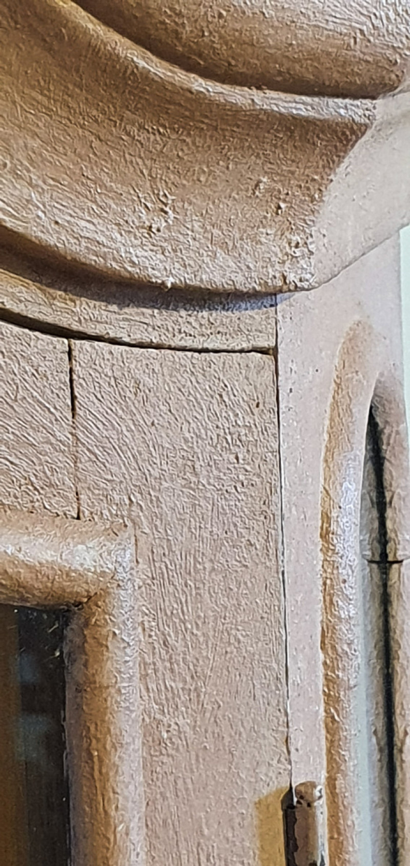 Wszelkie przecierki, niedoskonałości, struktura to efekt celowy uzyskany farbą. Środek niemalowany, stan oryginalny, bardzo dobry.